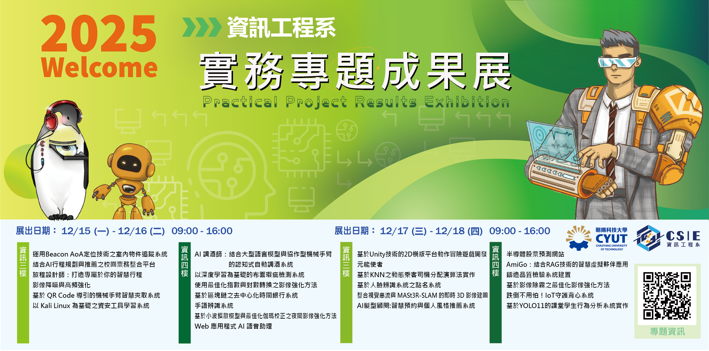 在此 致上最誠摯的邀請,希望學術界、產業界及各方的先進,前來參觀我們學生的成果,也給予我們建議,讓學生能獲得更豐碩的進步與學習。